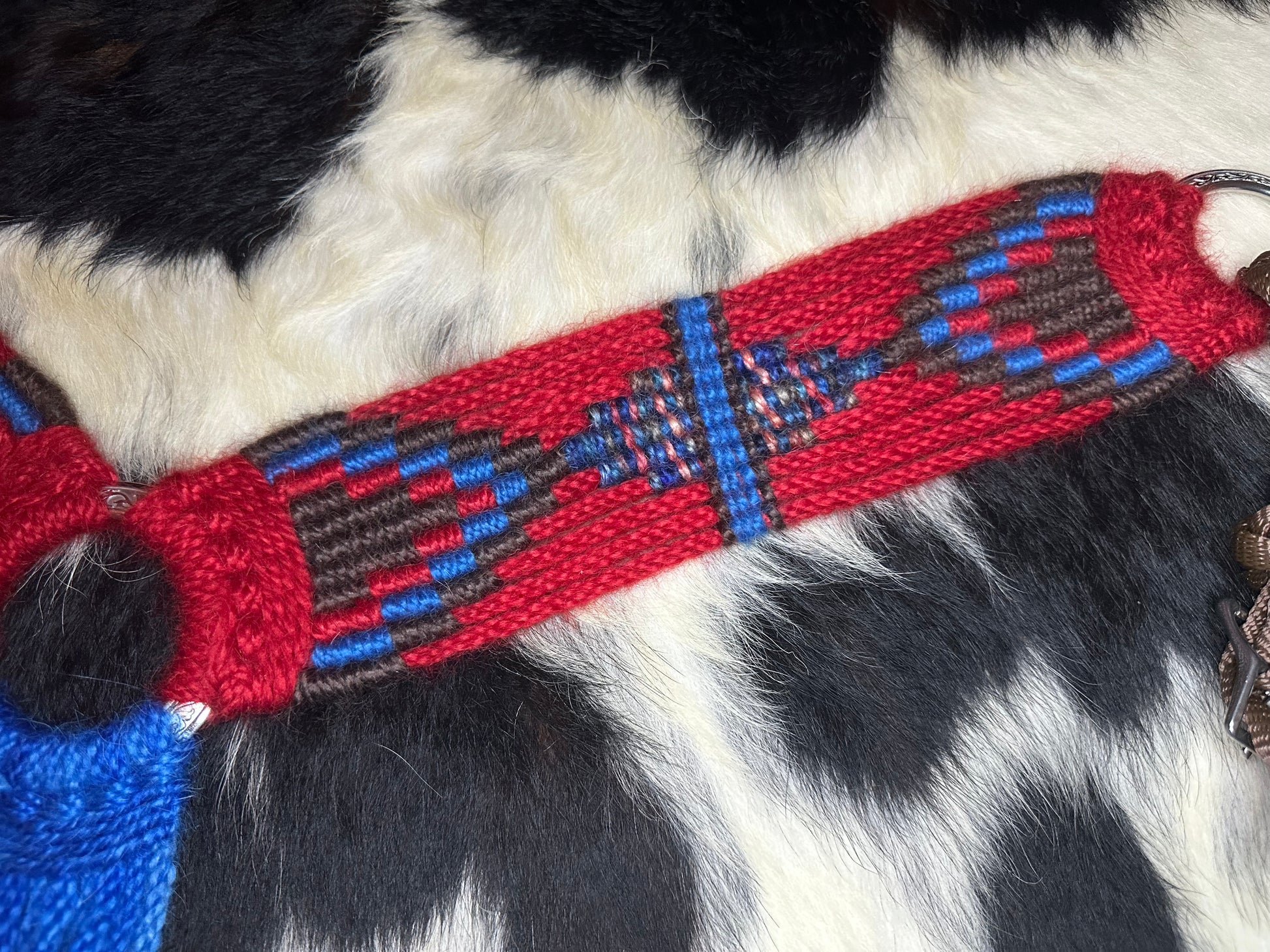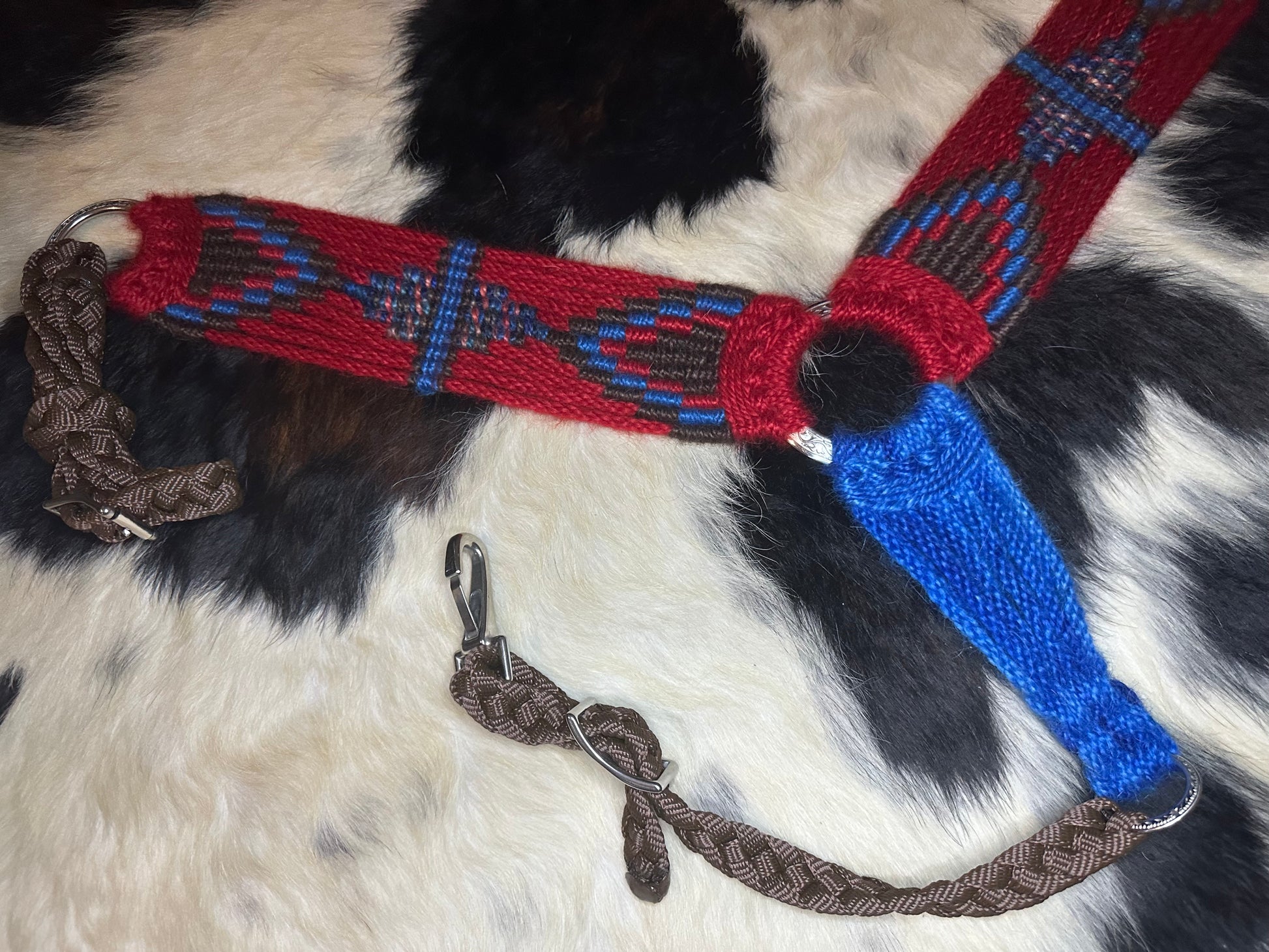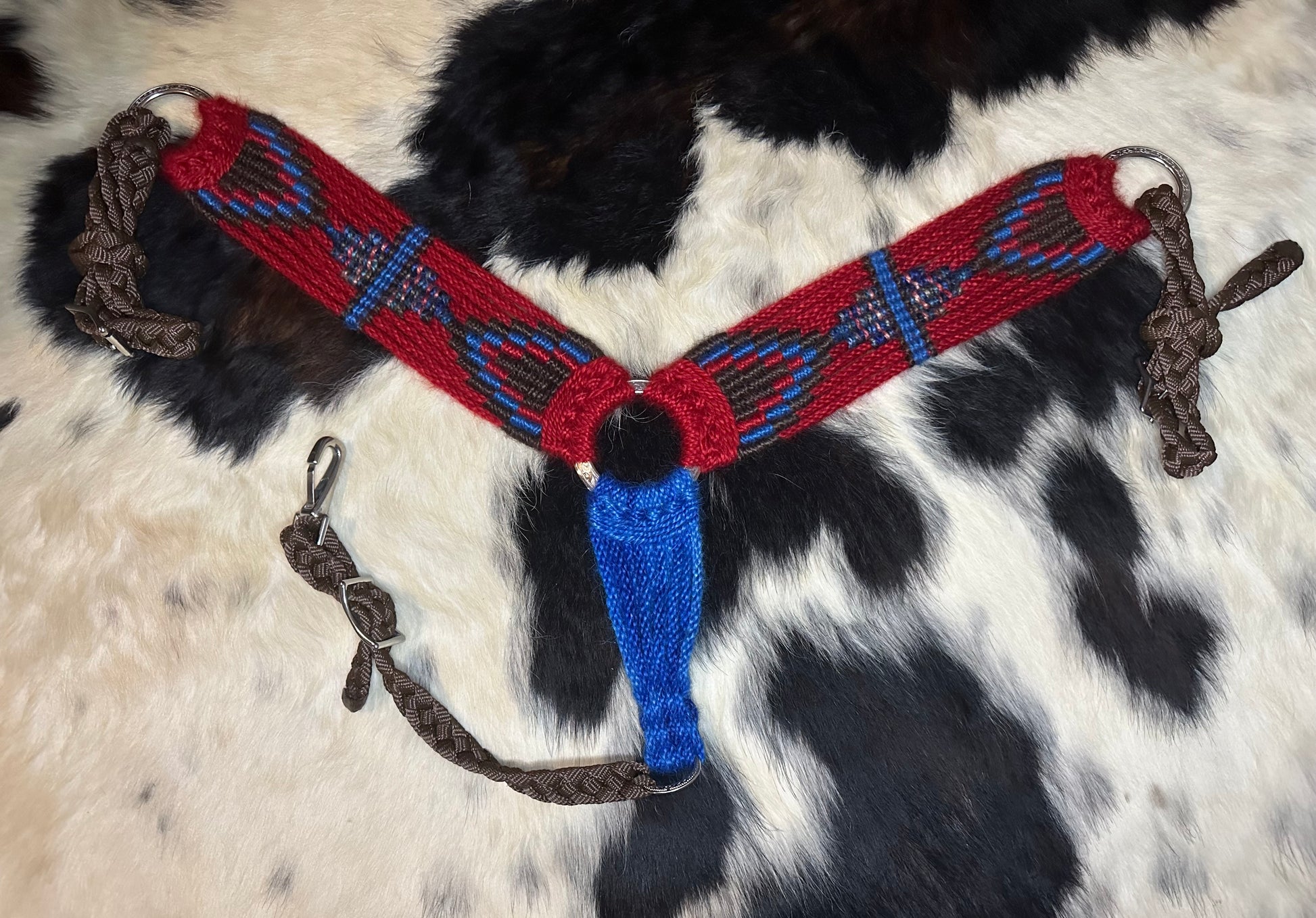 Mohair breast collar (red, royal blue, and brown)